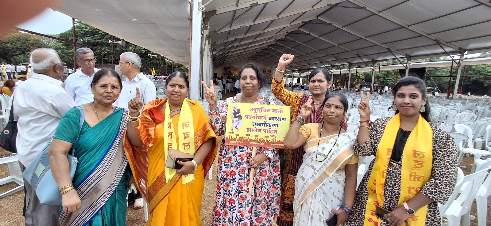राज्यातील मातंग समाजाच्या वतीने अनुसूचित जाती आरक्षणाचे उपवर्गीकरण करावे आणि मातंग समाजाला लोकसंख्येच्या प्रमाणात स्वतंत्र आरक्षण मिळावे, न्यायमूर्ती बदर समितीचा अहवाल तत्काळ सादर करावा, क्रांतिवीर लहुजी साळवे अभ्यास आयोगाच्या शिफारसी तत्काळ लागू करण्यात याव्यात या मागण्यांसाठी आज आझाद मैदानावर जन आक्रोश महाआंदोलन करण्यात आले. त्यास राज्यभरातून या आंदोलनाला मोठ्या संख्येने मातंग समाजातील महिला उपस्थित होत्या.