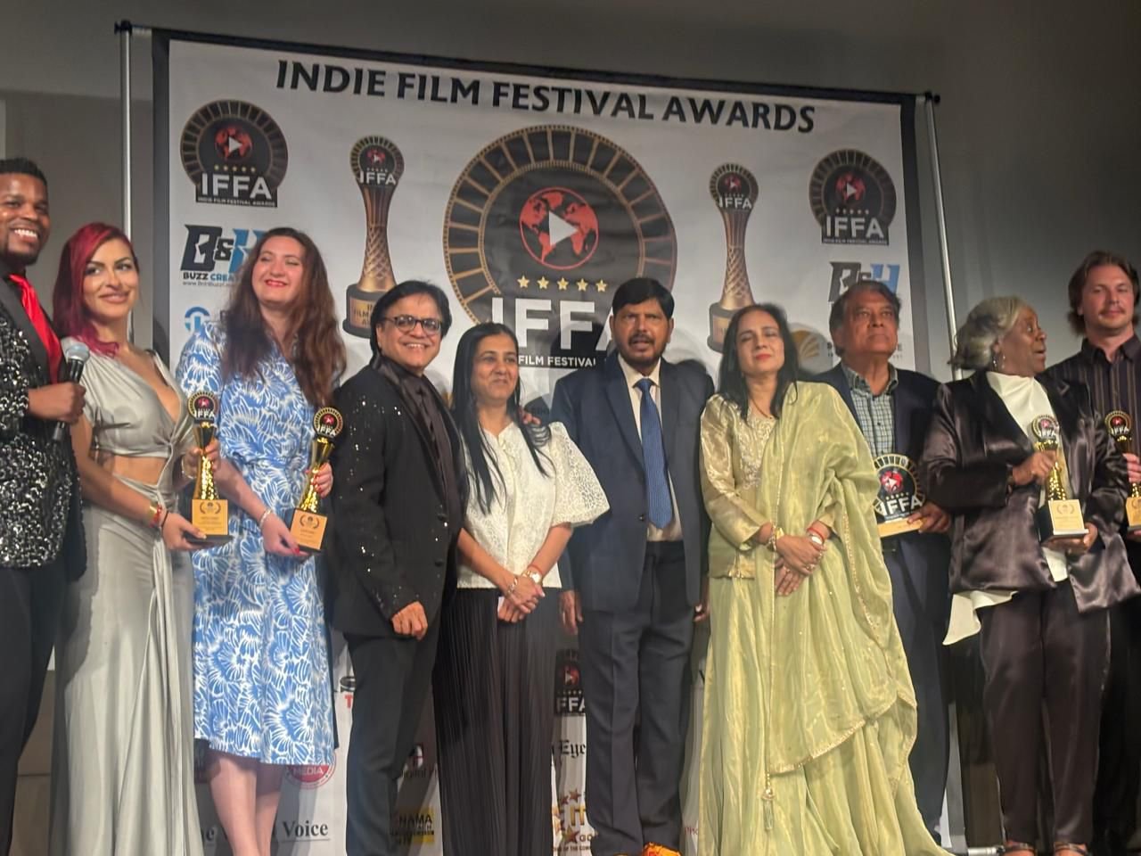 अमेरिकेतील न्युयॉर्क येथे इंडी फिल्म फेस्टिव्हल अवॉर्ड 2025 चे आयोजन करण्यात आले असून या फिल्म फेस्टिव्हल चे उद्घाटन रिपब्लिकन पक्षाचे राष्ट्रीय अध्यक्ष केंद्रीय सामाजिक न्याय राज्यमंत्री मा.ना.रामदास आठवले आणि न्यूयॉर्क चे महापौर एरिक ऍडम यांच्या हस्ते करण्यात आले. न्यूयॉर्क मध्ये इंडी फिल्म फेस्टिव्हल अवॉर्ड चे आयोजन मुकेश मोदी यांनी केले आहे. यावेळी सौ.सीमाताई आठवले, जीत आठवले व चंद्रशेखर कांबळे उपस्थित होते. ना.रामदास आठवले अमेरिका दौऱ्यावर असून येत्या ११ जून रोजी मुंबईत परतणार आहेत. इंडी फिल्म फेस्टीव्हल ॲवॉर्ड एक महत्वपूर्ण अवॉर्ड असून या अवॉर्ड चे वितरण ना. रामदास आठवले यांच्या हस्ते करण्यात आले.यात अनेक मान्यवर उपस्थित होते.